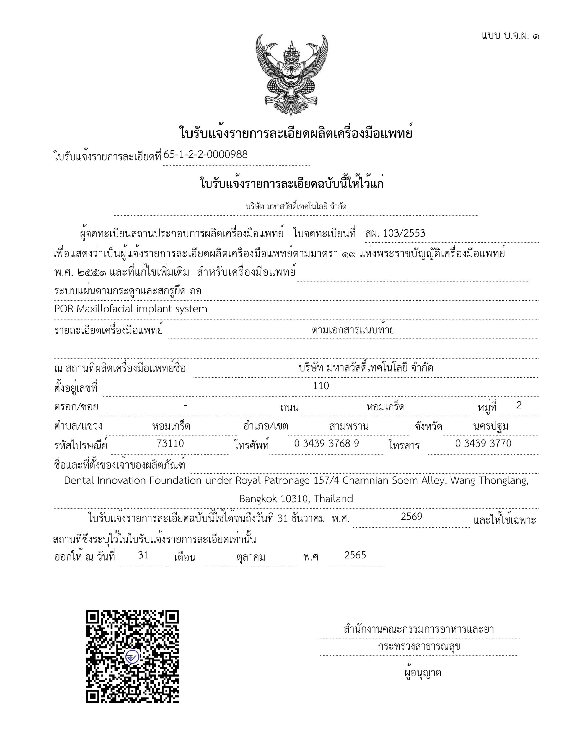 Founded in 2005 , MAHASAWAT TECHNOLOGY was established with the commitment to be global manufacturer of medical devices especially implanted devices, such as maxillofacial implant plates , screw for the human face and jaw area. Craniofacial implants for attaching to ears, eyes, nose, Mini plate and screw for pets, and dental implant.