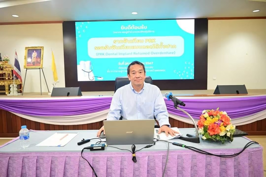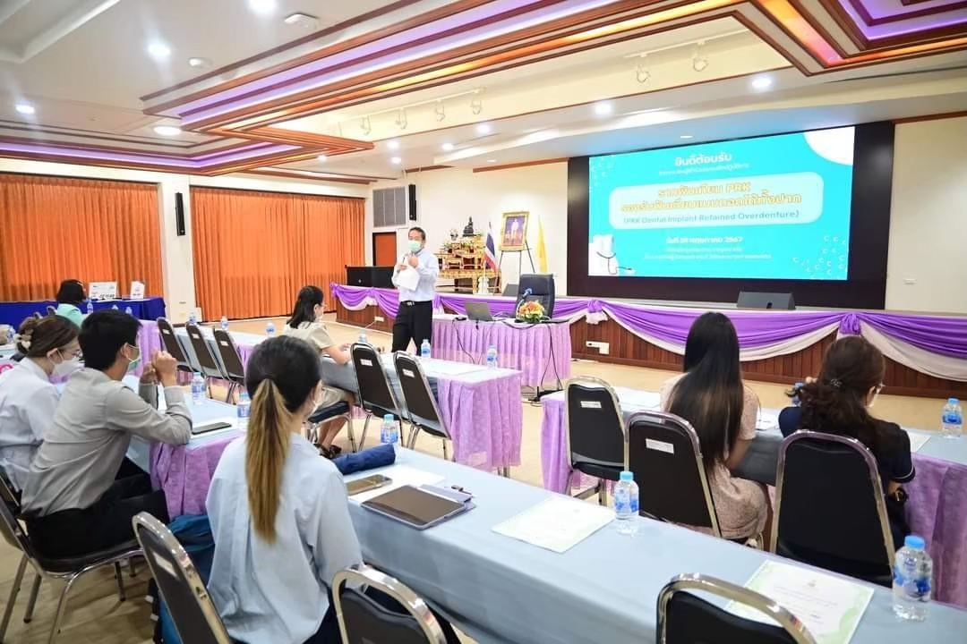 วันที่ 24 พฤษภาคม 2567 การฝึกอบรมเชิงปฏิบัติการรากฟันเทียม PRK รองรับฟันเทียมแบบถอดได้ทั้งปาก สำหรับหน่วยบริการในโครงการ ฟันเทียม รากฟันเทียมเฉลิมพระเกียรติฯ ณ โรงพยาบาลกำแพงเพชร โดยได้รับเกียรติจาก ทพ.เจษฎา ตั้งกิจงามวงศ์ ประธานคณะกรรมการพัฒนาระบบบริการสุขภาพ สาขาสุขภาพช่องปากเขต 3 เป็นประธานเปิดงาน ณ ห้องประชุมประธานกาญจนาลัย ชั้น4 อาคารผู้ป่วยนอก 60 ปีโรงพยาบาลกำแพงเพชร ในการฝึกอบรมครั้งนี้มีทันตแพทย์จากโรงพยาบาลกำแพงเพชรและโรงพยาบาลชุมชนในจังหวัดกำแพงเพชรเข้าร่วมฝึกอบรม เพื่อเพิ่มความรู้ ความเข้าใจและความชำนาญในงานรากฟันเทียมระบบ PRK ทั้งงานฝังรากฟันเทียม( Surgery process) และการจับยึดฟันเทียม(Prothetics process)
